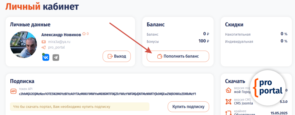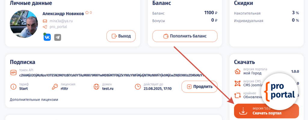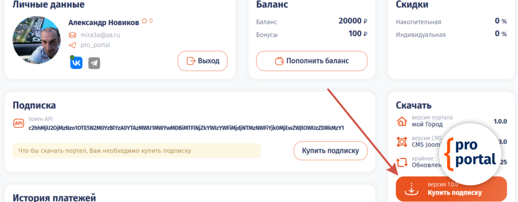 Покупка подпискиПосле этого Вы сможете скачать портал.