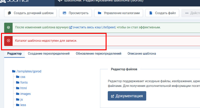 Здравствуйте. После обновления 2.4.0 возникла проблема с каталогом шаблона. Выставлял 775 и 777 ничего не меняется. НО. Попробовал редактировать файл - изменения сохраняются. Сейчас стоит drwxr-xr-x на gorod и mobile. Как избавиться от этого предупреждения? Я иногда работаю на ноутбуке, а там и так экран небольшой и ЭТО постоянно нужно убирать. Надоело.