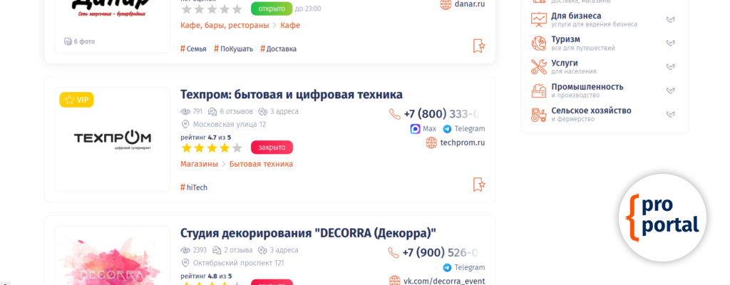 Эта платная функция доступна для всех 7-ти разделов портала. Применяя VIP статус, к компании или к объявлению добавляется бейдж VIP.