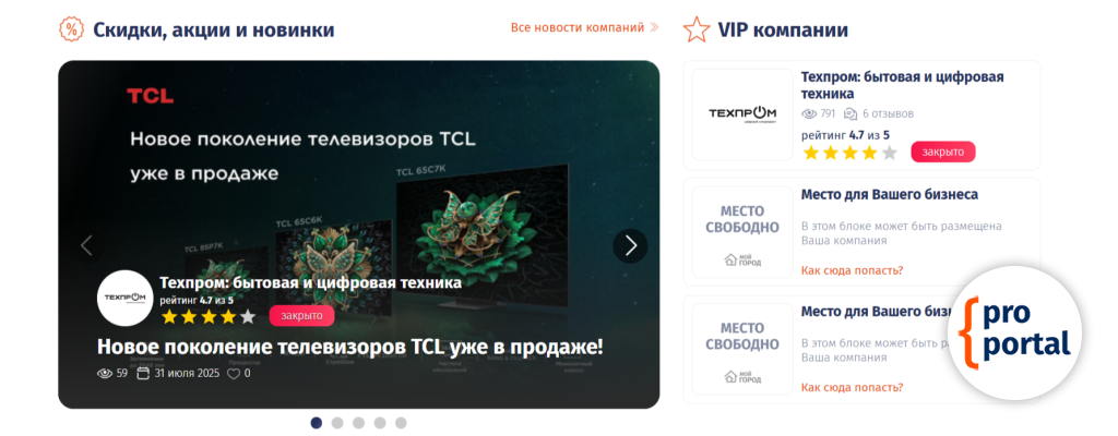 Новости компанийА так же становится первой в блоке Скидки, акции, новинки на главной странице.