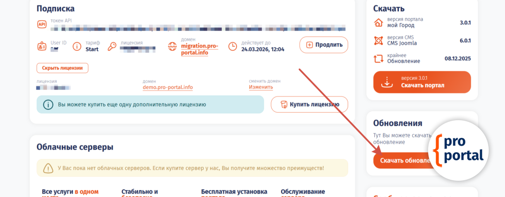 Что бы скачать обновление, необходимо перейти в Личный кабинет. И по кнопке Скачать обновление получить архив update.zip и разархивировать его.
