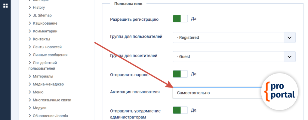 Настройки пользователейВ настройках все в целом интуитивно понятно. Обратите внимание на пункт Активация пользователя. Тут вы можете сделать активацию администратором, в этом случае пользователя активировать сможет только администратор.