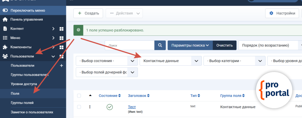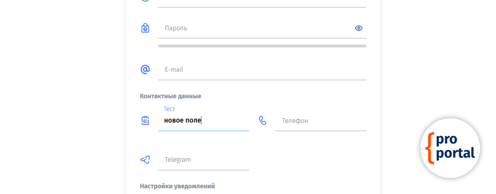 Для добавления дополнительных полей, необходимо перейти Пользователи/Поля и выбрать группу полей Контактные данные.