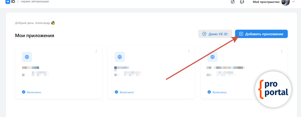 Создаем приложение, нажимая кнопку Добавить приложение.