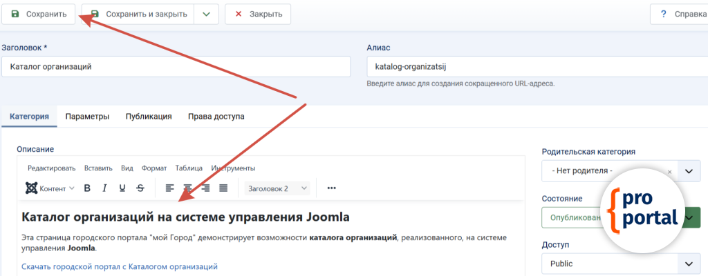 КатегорииДалее отредактировать текст описания и Сохранить.