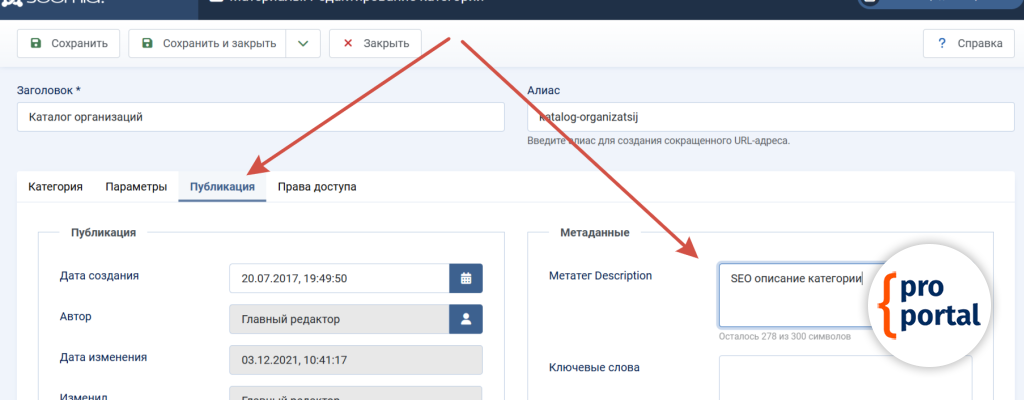 Описание категорииТак же не забывайте редактировать и Метатег Description у этой категории, сделать это можно на вкладке Публикация.