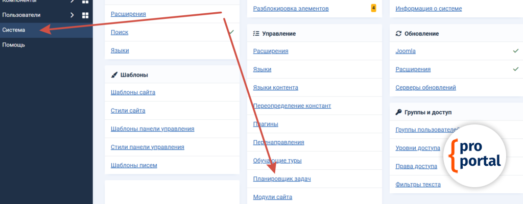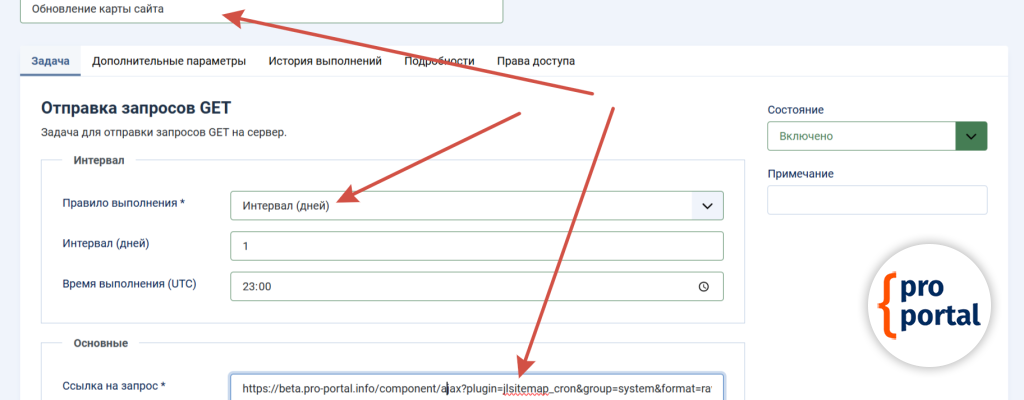 Ссылка на обновление карты сайтаДалее перейдите Система/Планировщик задач