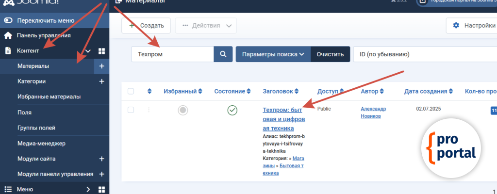 Для этого переходим Контент/Материалы. Поиском ищем нужный материал и открываем его.