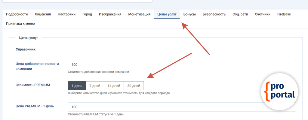 Городской порталНа вкладке Цены услуг можно задать стоимость всем платным услугам