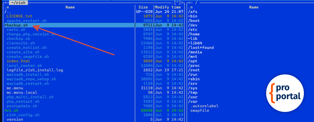 Осталось настроить автоматическое создание бэкапов по cron. Для этого закрываем MC (клавиша F10) и выполняем команду