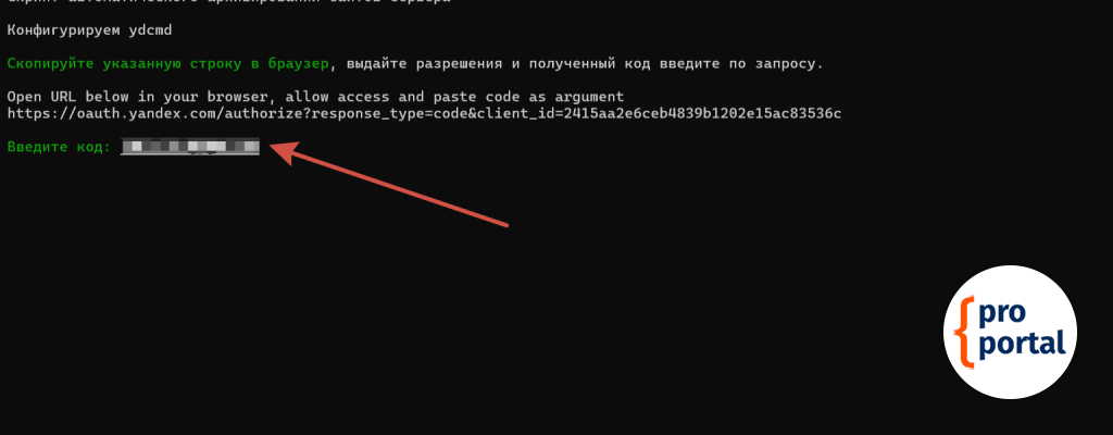Разрешаем использовать Яндекс.ДискИ далее Вы увидите Код подтверждения, который нужно ввести в Терминале, напоминаю, вставка в терминале - сочетание клавиш Shift + Insert.