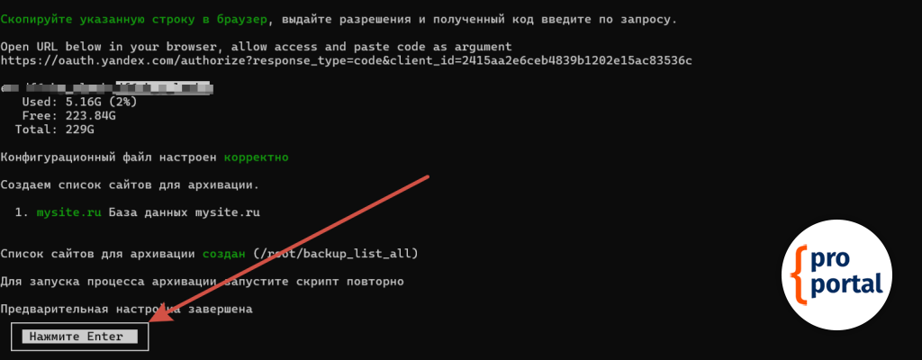 Предварительная настройкаТеперь при каждом запуске этого файла backup.sh, Вы можете делать бэкап в любое время и он будет сохраняться на Ваш Яндекс.Диск.