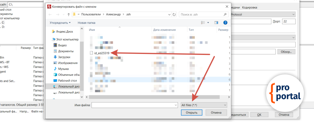 SFTP - SSH File Transfer ProtocolВ открывшемся окне, нужно выбрать показ всех файлов и перейти C:\Пользователи\Username\.ssh и выбрать файл id_ed25519.