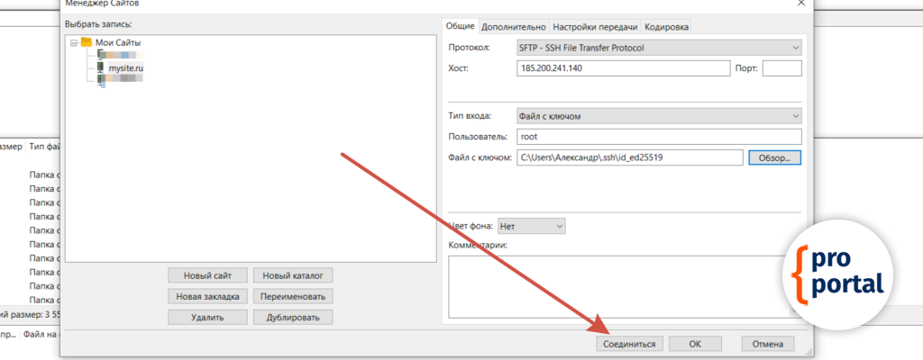 Инструкция о создании безопасного SFTP соединения с сервером.