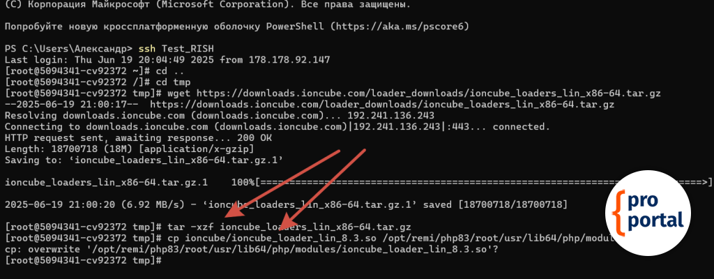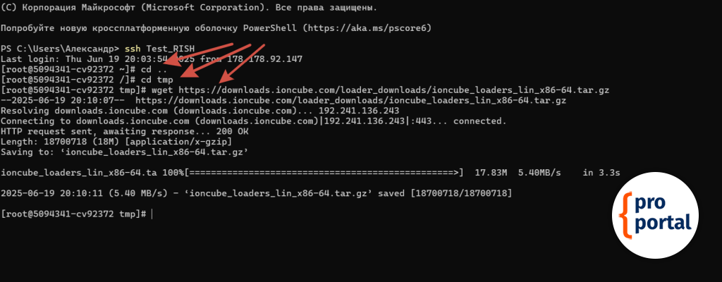 Далее выполняем несколько команд подряд и скачиваем установщик ionCube