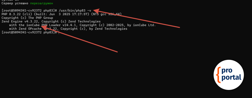 /usr/bin/php83 -vи если Вы все сделали правильно, то увидите сообщение о том, что ionCube установлен