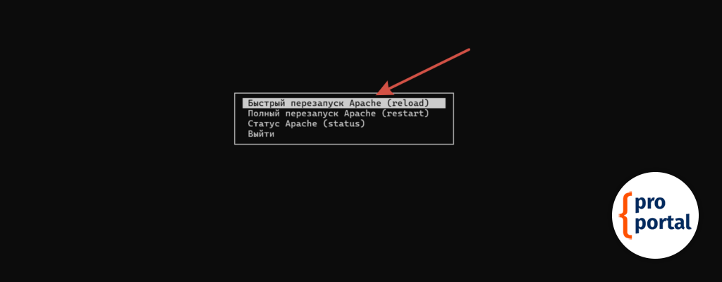 и далее выбираем Быстрый перезапуск Apache.