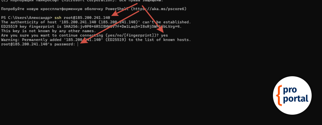 Are you sure you want to continue connecting (yes/no/[fingerprint])?пишем команду