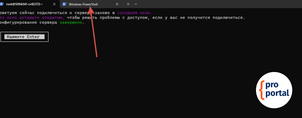 На следующем этапе установщик нам предлагает подключиться к серверу на соседней вкладке, что бы не прерывать текущее соединение, и, если что-то пошло не так, была возможность включить авторизацию по паролю.