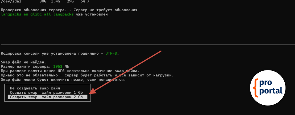 Если размер памяти менее 4Гб, то установщик предложит создать swap файл, но это не обязательно. Но я обычно создаю. Выбираем нужный вариант и жмем Enter