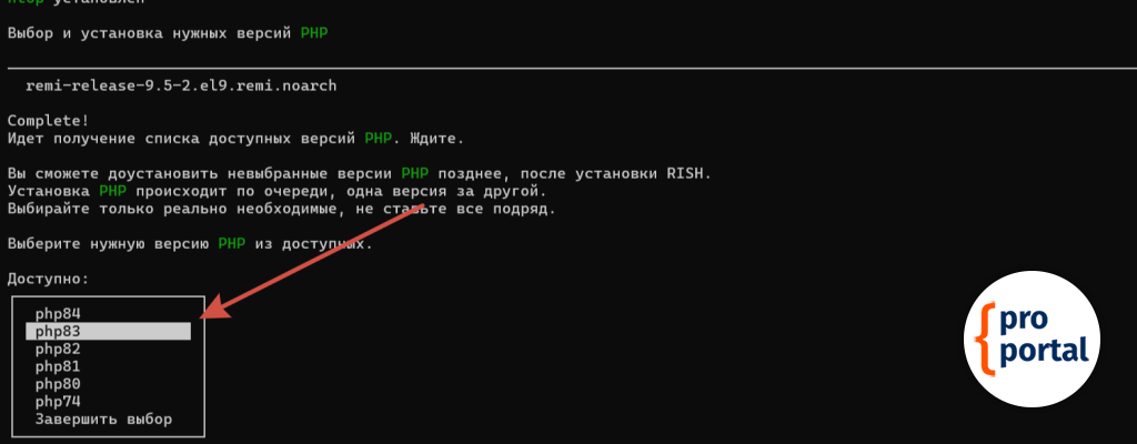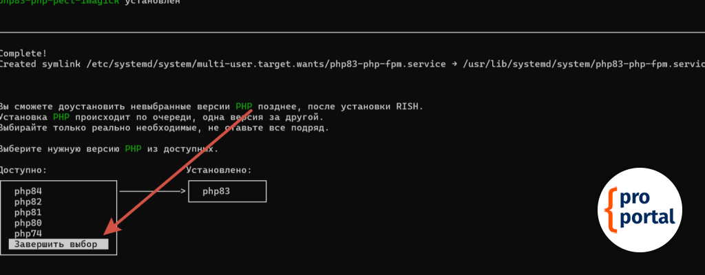 Закрываем cockpitНа следующем шаге выбираем версию PHP 8.3