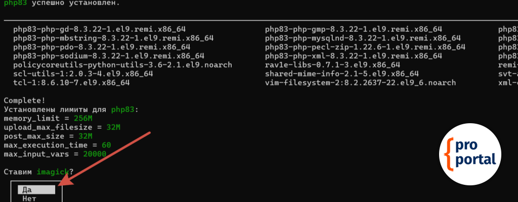 Версия PHP 8.3Далее выбираем Да, при вопросе ставить ли Imagik.